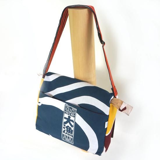 大間の大漁手ぬぐい・青褐(あおかち)と大漁旗のコラボバッグです!