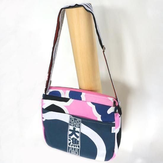 大間の大漁手ぬぐい・青褐(あおかち)と大漁旗のコラボバッグです!